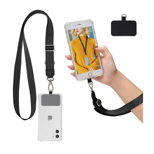 Strap para carcasa de celular universal, diseño ajustable negro.