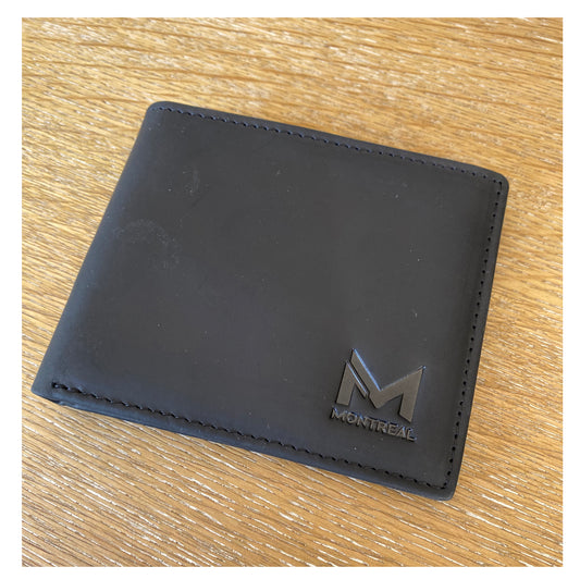 Billetera hombre, cuero genuino, protección RFID, bifold black.