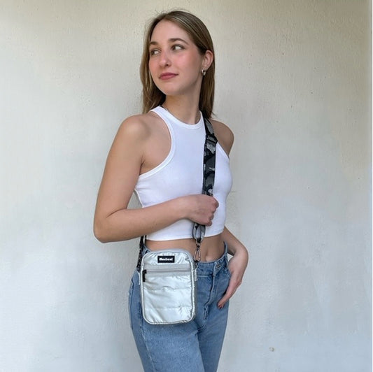 Bandolera, cartera, puffer minibag, strap removible, grey.