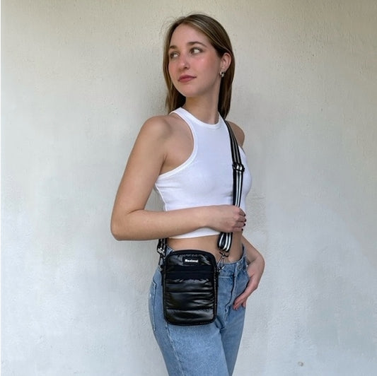 Bandolera, cartera, puffer minibag, strap removible, black.