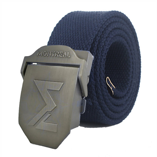Cinturón lona, hebilla metálica, azul, Montreal.