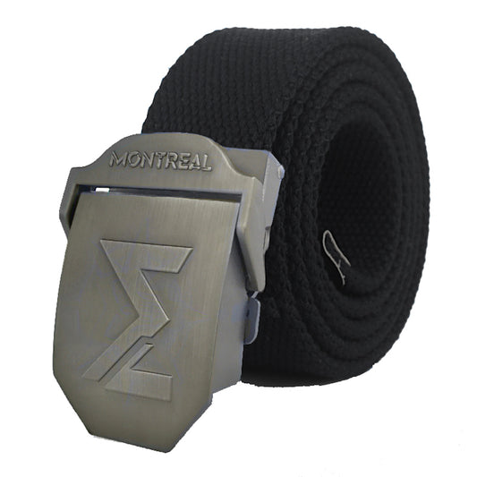 Cinturón lona, hebilla metálica, negro, Montreal.