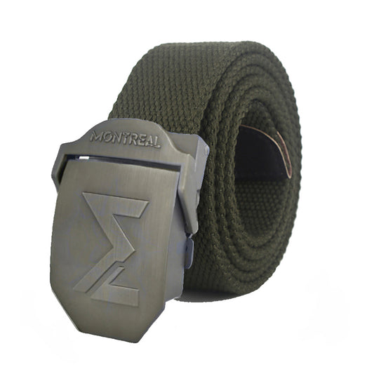 Cinturón lona, hebilla metálica, verde, Montreal.