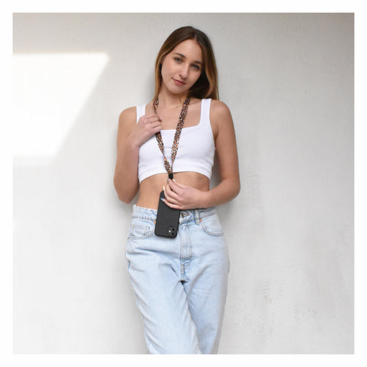 Strap para carcasa de celular universal, doble correa café.