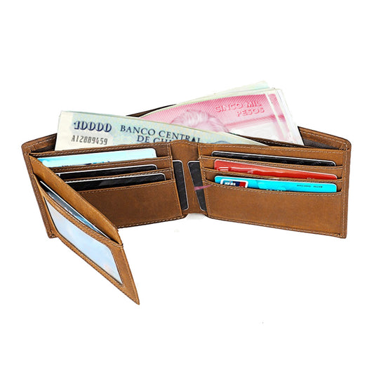 Billetera hombre, cuero genuino, protección RFID, bifold brown.